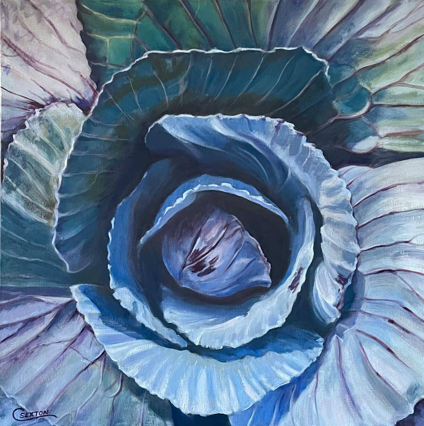 Sexton’s work reveals a deep sensitivity to structure, surface, and color, transforming familiar natural forms into immersive, almost meditative compositions. Her paintings invite viewers to move inward—layer by layer—where subtle shifts in tone and texture create a sense of quiet depth and discovery.